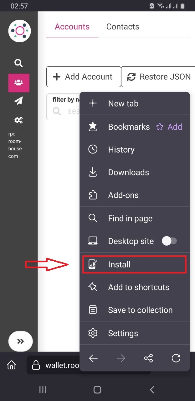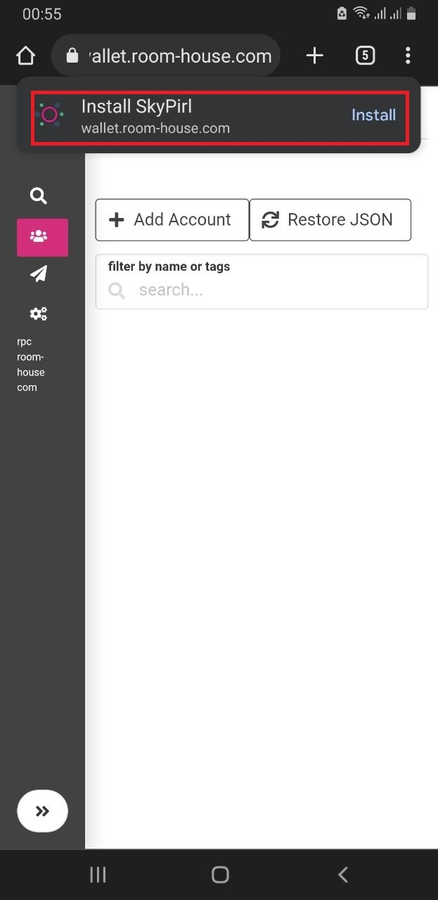 You go to the Chrome browser on Android, then click on the link skypirl light wallet and R-H, a message pops up, click Install