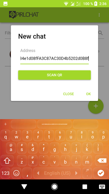 PirlChat khả dụng trên App store dành cho thiết bị Apple và trên Google Play dành cho thiết bị chạy Android 5.0 trở lên. Khi cài đặt PirlChat trên mạng Pirl, một địa chỉ sẽ được tạo, để sử dụng đầy đủ chương trình, bạn cần chuyển một số PIRL - đơn vị tiền tệ nội bộ của mạng. Đọc về cách thực hiện việc này trong phần đánh giá phiên bản beta 0.5.1-0.6 , nhưng hãy nhớ rằng PirlChat đã nhận được một số thay đổi và cập nhật quan trọng vào thời điểm phát hành. Ví dụ: trong phiên bản mới của chương trình, 1 PIRL sẽ tự động được ghi có vào tài khoản của người dùng sau khi tạo tài khoản mới.