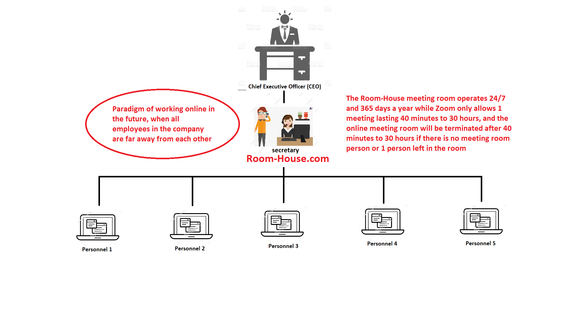 When using a Zoom account, you will be very tired because Zoom only allows you to use 1 account on 1 computer, phone, or does not allow you to use 1 account to join 2 or more meetings at the same time, you have to leave the old room to join the new room. With Room-House you do not need to worry too much because you do not need to create an account, you can join many meetings at the same time on 1 computer or phone. To join a room you just need to enter your name if the room is open, or enter the password if the room is locked.