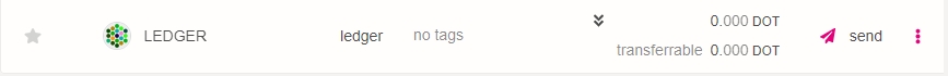 Once you have your account loaded on the "Accounts" tab it should show a row with your Ledger account. At the far right of the row is located your account's DOT balance. If you expand the balance arrow, it will show details of your balance such as locks or reserved amounts.