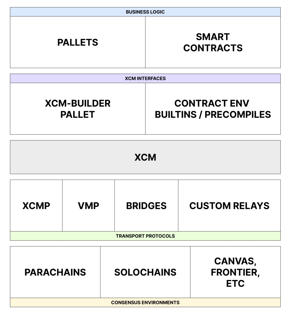 What started as an approach to cross-chain communication, has evolved into a format for Cross-Consensus Communication that is not only conducted between chains, but also smart contracts, pallets, bridges, and even sharded enclaves like SPREE.