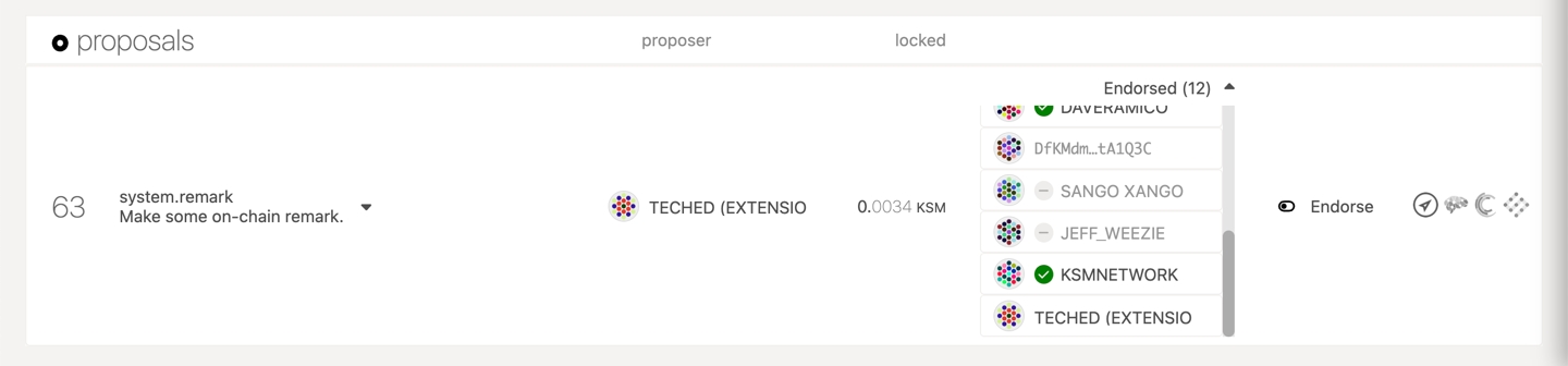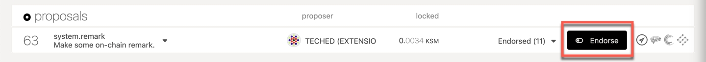 To endorse a proposal, navigate to the proposal you want to endorse and click on the "Endorse" button.