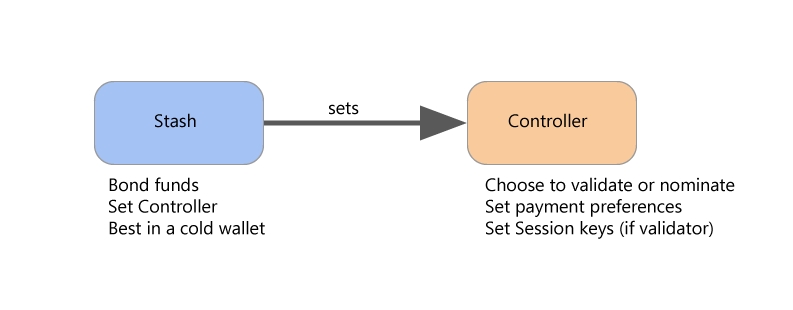 If you need a refresher on the different responsibilities of the stash and controller account when staking, take a look at the accounts section in the general staking guide.