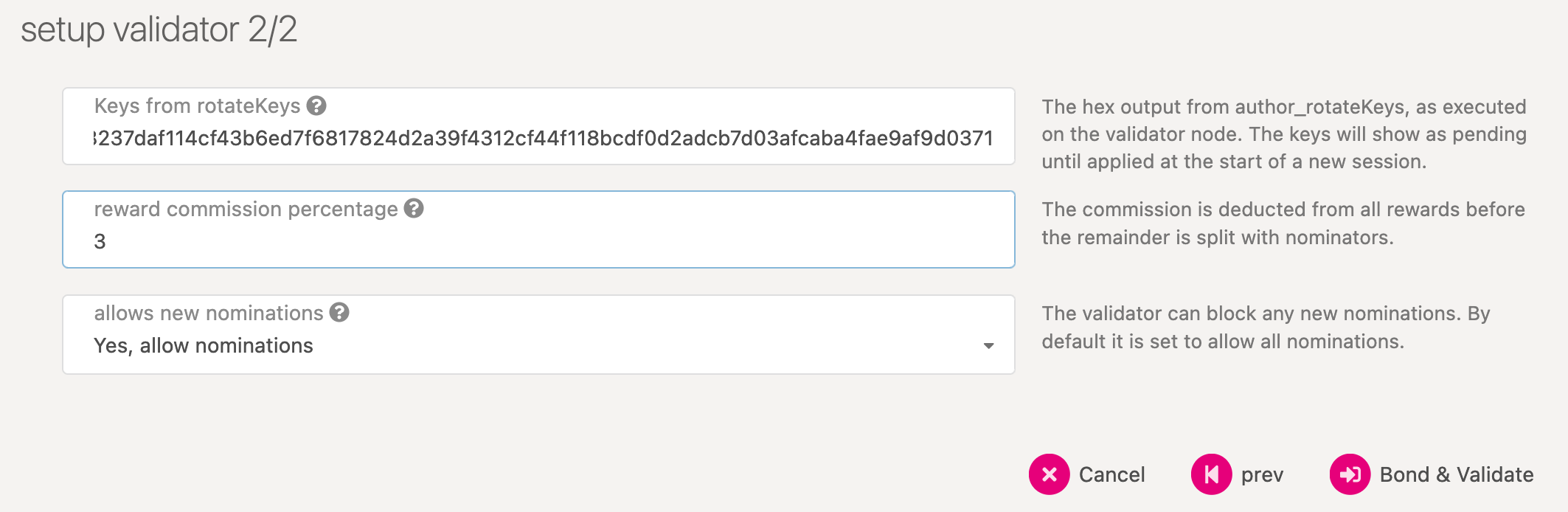 Payment preferences - You can specify the percentage of the rewards that will get paid to you. The remaining will be split among your nominators.
