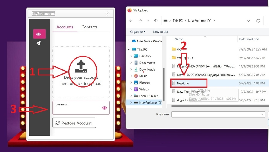 Step 3: Click "Drop your account here or click to upload" , then you find the folder containing your Json wallet file, and type the wallet password.