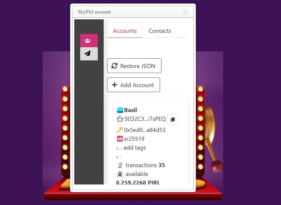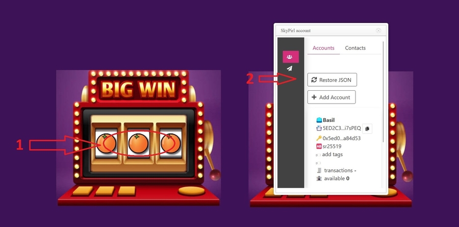 Step 8: To connect the slot machine to another wallet, please click on the slot machine, and select "Restore JSON". Have fun playing ^^