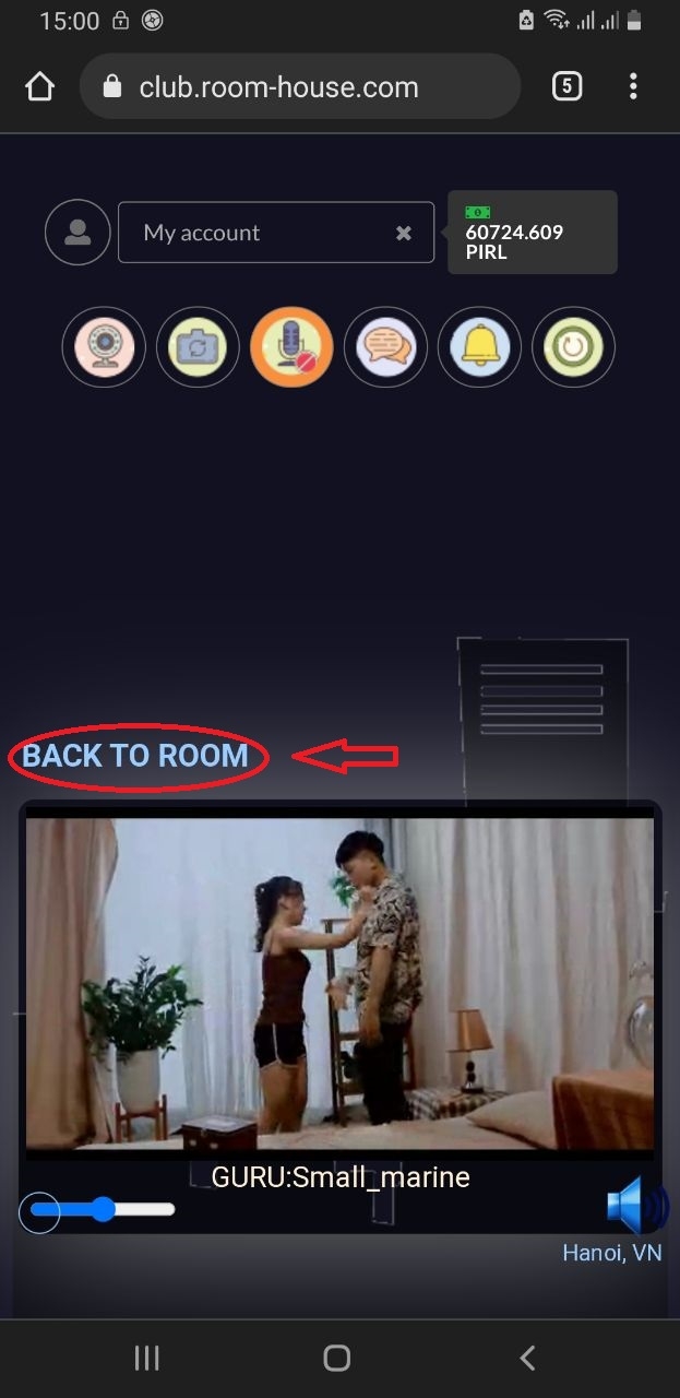 Step 2: This is the image you switch to the CINEMA interface, to switch back to the multi-video view, click "BACK TO ROOM"