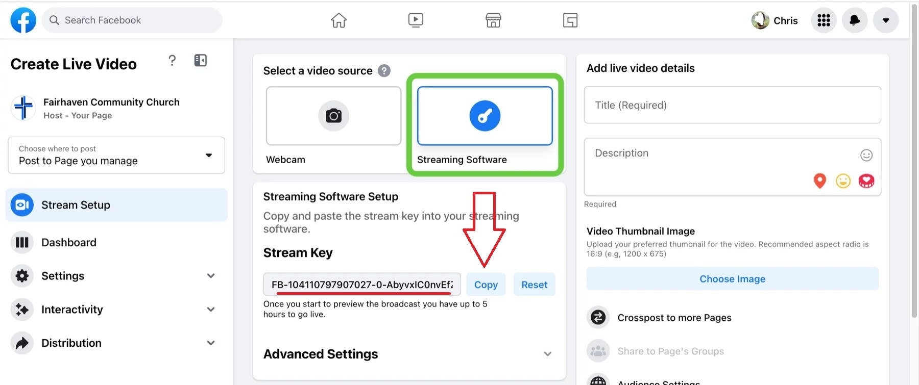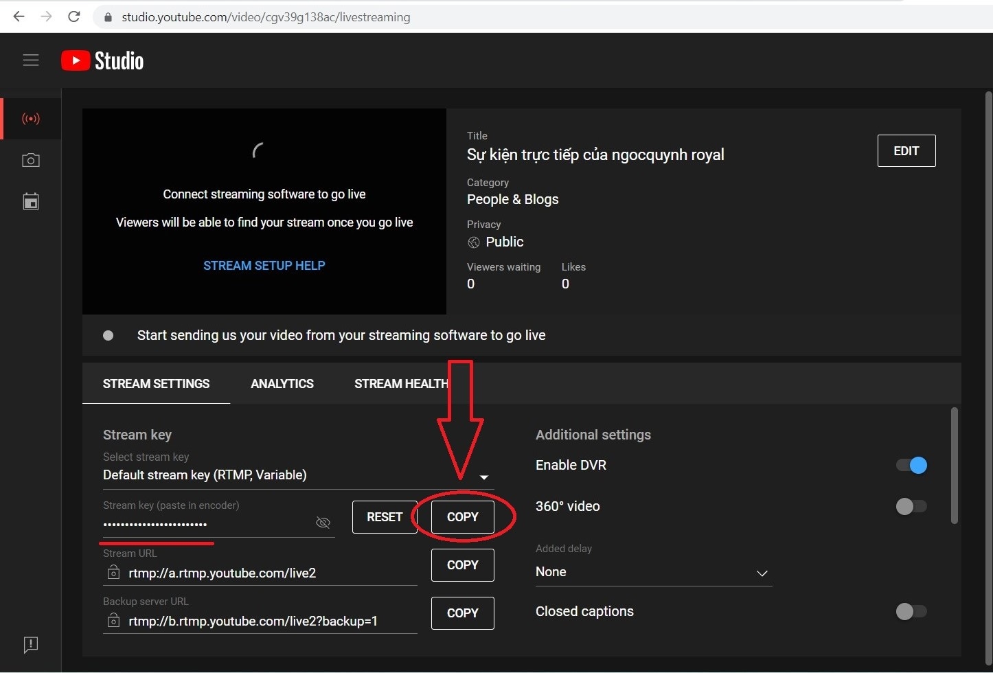 Step 1: You go to Youtube studio , Facebook, then you click copy "stream key"