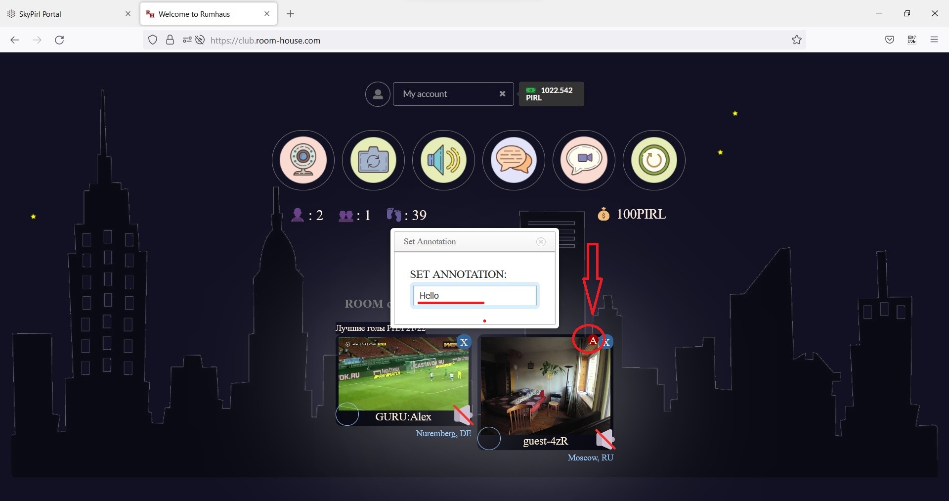 If you want to chat separate with each video, just click on the red "A" in the right corner of the video