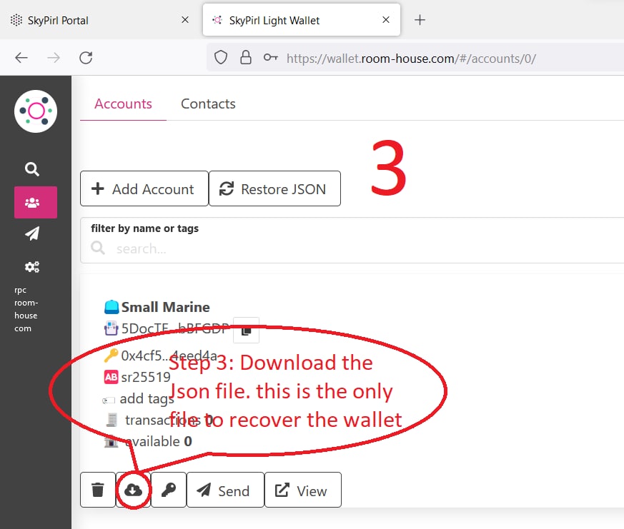 Step2: You click on search to select the file Json to recover, in which folder do you save the Json file, you go there to find it, then enter the wallet password to log back into the old wallet