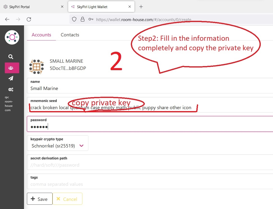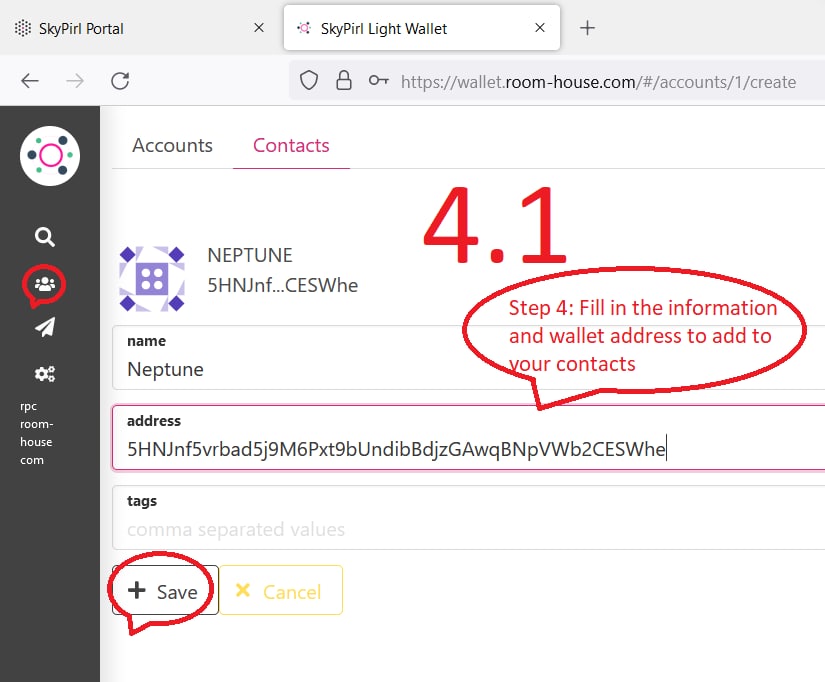 ___Step4.1: Fill in the information and wallet address to add to your contact