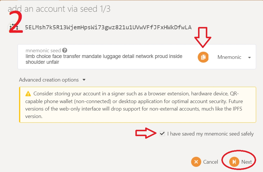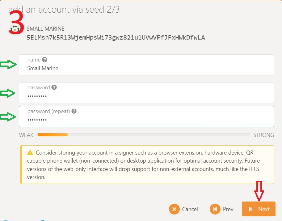 Step3: Insert a wallet name. Important! Make a password for your new account Click “Next”