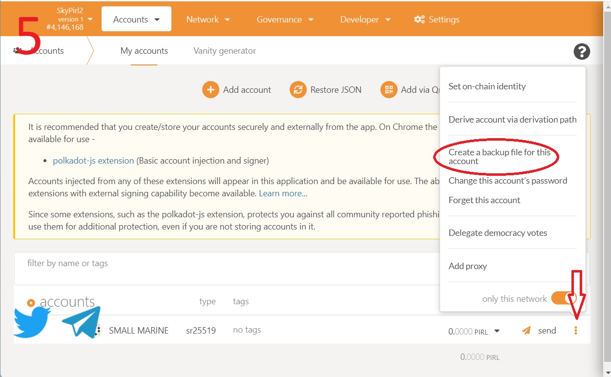 Step1: To open a new Pirl Account/wallet on the new chain, click “Add account”