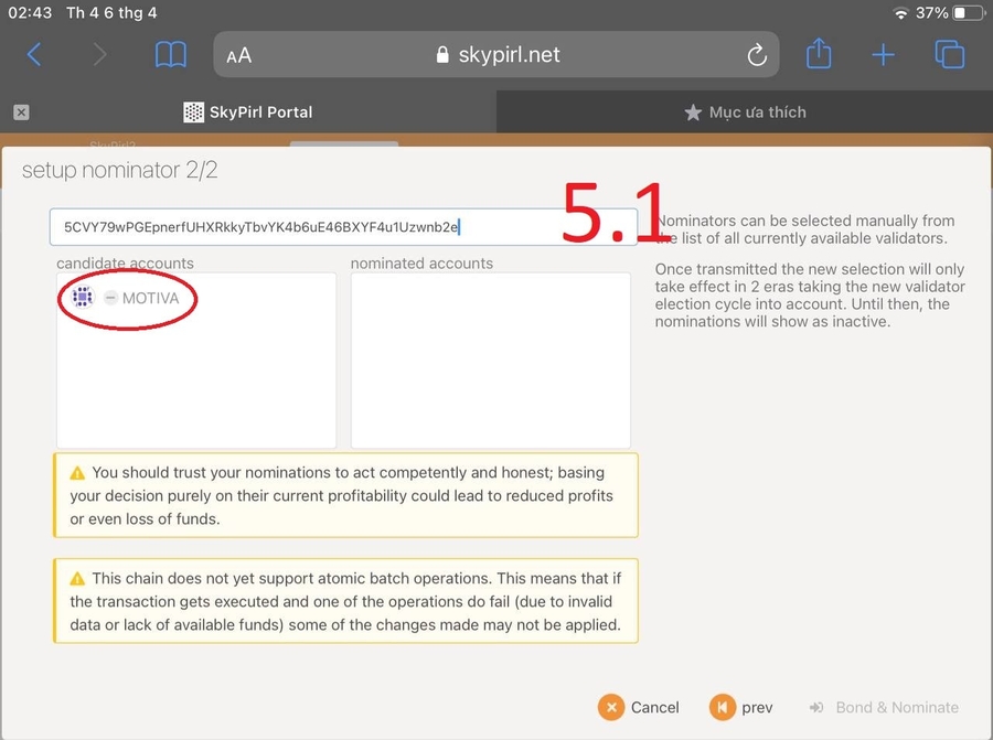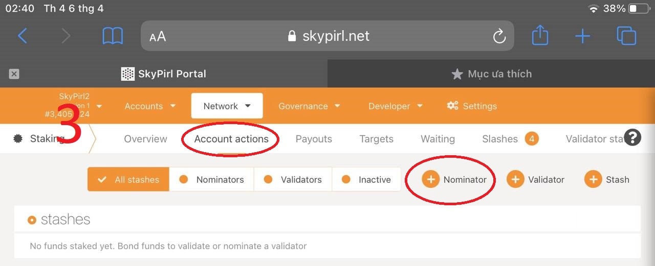 Step 3: Select "Account actions" and click "Nominator"