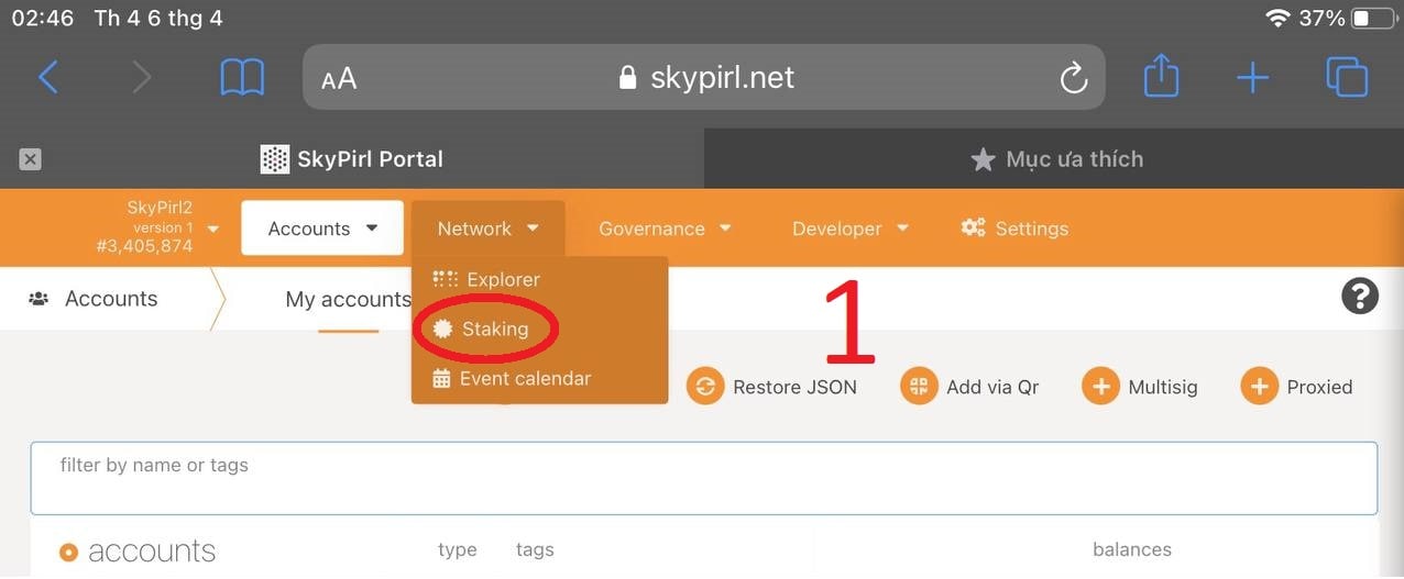 Step 1: Access the link "skypirl.net" select "Network" and click "Staking"
