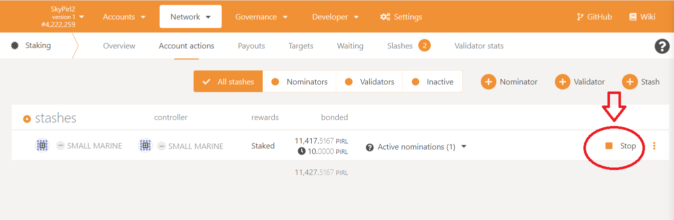 1To add Pirl coin to the nomination, click on "Bond more funds".